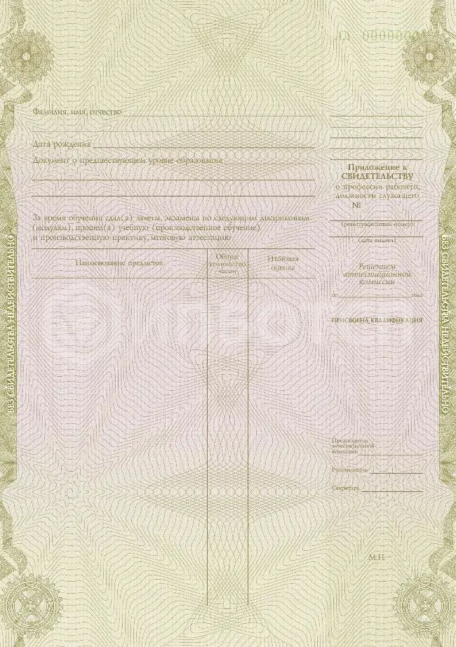 - Свидетельство о профессии рабочего, должности служащего.